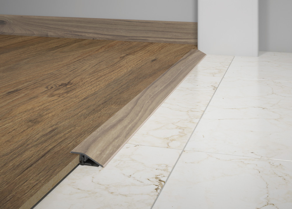 Acabamento que permite a passagem de nível entre o Durafloor e outros tipos de pisos de diferentes espessuras. A medida máxima de desnível para utilização do Perfil Redutor é de 9 mm.