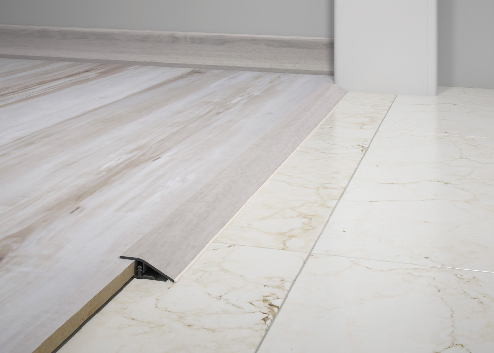 Acabamento que permite a passagem de nível entre o Durafloor e outros tipos de pisos de diferentes espessuras. A medida máxima de desnível para utilização do Perfil Redutor é de 9 mm.