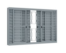 Janela veneziana de correr central 4 folhas móveis e 2 fixas com grade mosaico