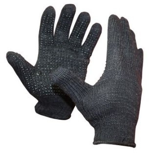 Luva de segurança tricotada com fios de algodão e poliéster, punho com elástico. Opção com pigmentos antiderrapantes (PVC) na palma e dedos.