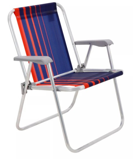 Cadeira de Praia Tramontina Samoa Alta em Alumínio com Assento Azul Escuro e Laranja