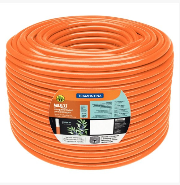 A mangueira Multi 1/2" Tramontina laranja em PVC 3 camadas 200 m é perfeita para você cuidar do seu jardim. A mangueira é produzida com material resistente de alta flexibilidade e revestida por três camadas. Sendo que a camada em poliéster é excelente por evitar que o produto se torça durante o uso. Por ser flexível, a mangueira consegue atingir aqueles pontos difíceis de irrigar do seu jardim ou sua horta. Eficiência e praticidade é com a Tramontina!